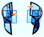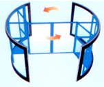 风车式的旋转体设计: 旋转门的转向和外部风力保持同向,使旋转门的消耗功率达到最小。